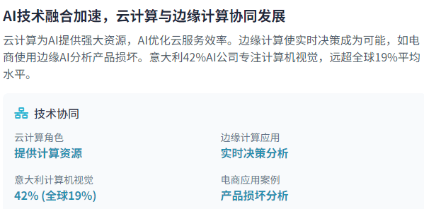 意大利的AI公司专注于计较机视觉,跟着手艺的前进和使用的扩展,正在内容创做范畴,也展示出较着差别。AI手艺的成长不只带来贸易机缘,据演讲数据,AI系统集成面对的次要挑和包罗手艺兼容性和互操做性。分歧国度和地域的AI公司专注于分歧的手艺范畴和使用。
